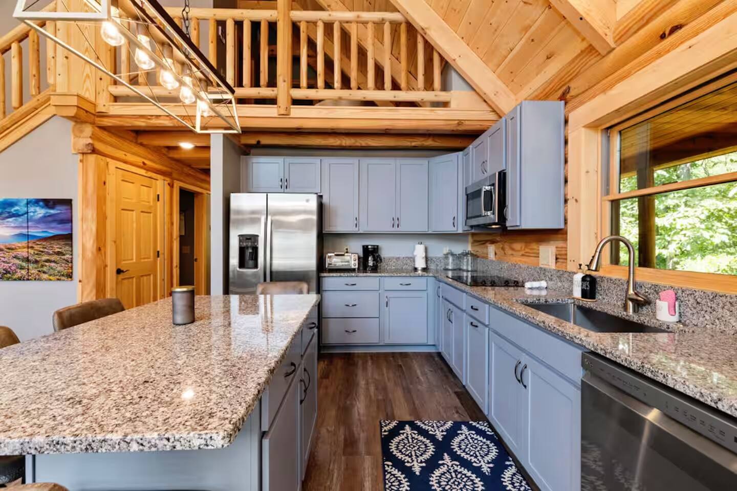 The cabin was beautiful and a great place to stay for a group of 9 people. We appreciated the well-stocked kitchen and bathrooms, as well as the black-out curtains in the bedrooms.